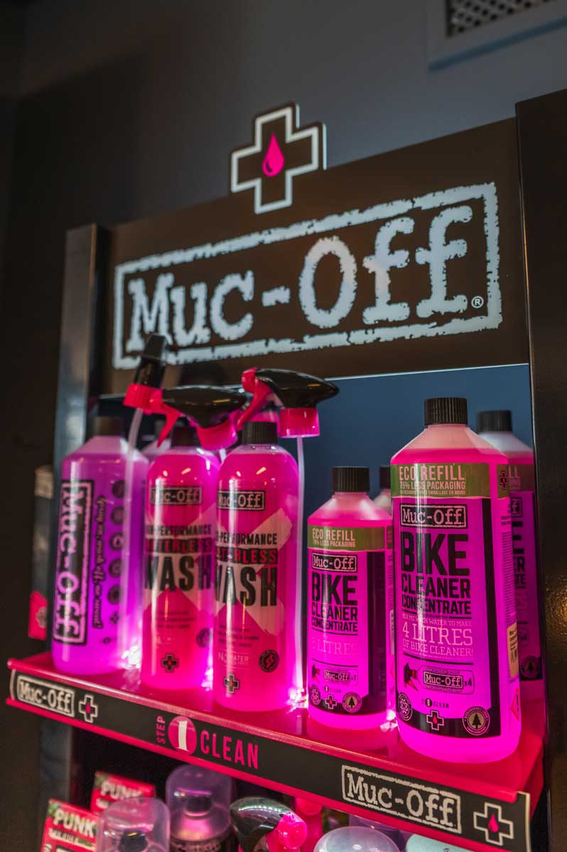 Een schone fiets is een snelle fiets. Wij hebben diverse schoonmaakmiddelen voor je fiets en E-bike van het merk Muc-off.
